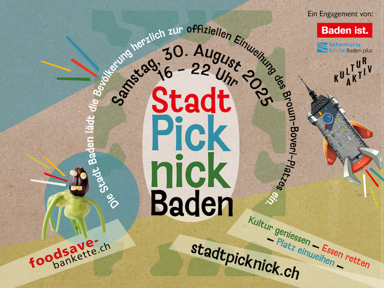 Das Stadtpicknick meets Foodsave-Bankett ist ein Engagement von Kulturaktiv Baden, der Reformierten Kirche Baden plus und der Stadt Baden